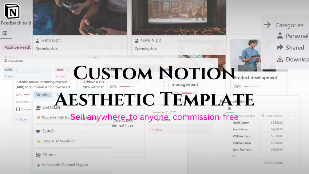 Ready to turn your Notion expertise into a money-making machine? With my Custom Notion Aesthetic Template service, I've done all the groundwork for you. Here's how it works: