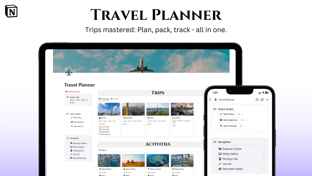 The Travel Planner's Notion template and content are only for individual use. You acknowledge that by accessing, downloading, or using this template, you are not reselling or otherwise using any part of it for profit.